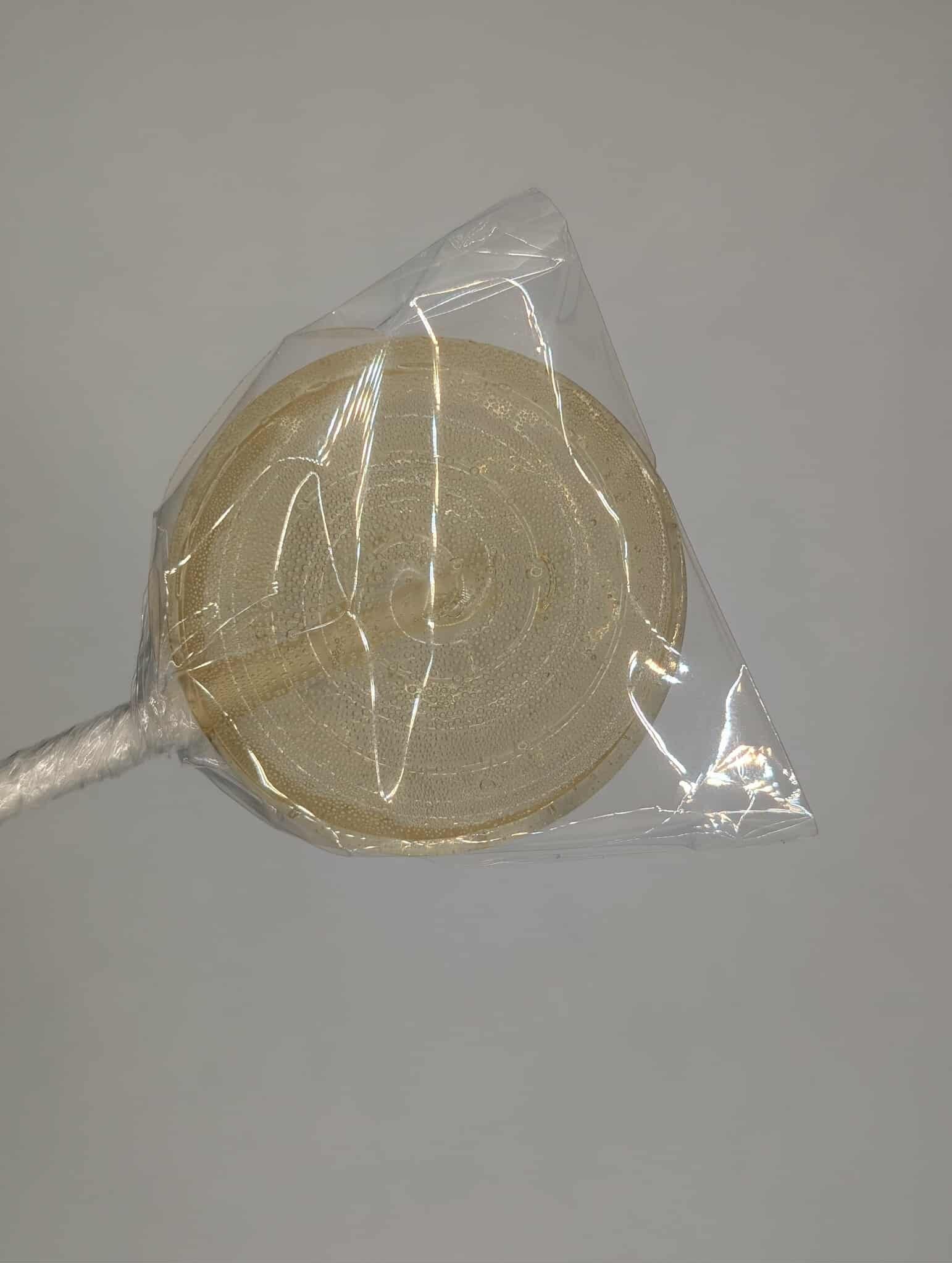 Our small-batch, hand-poured, dye-free lollipops are crafted to bring joy. Each lollipop measures approximately 1.5" across and 1/2" thick. Every pack includes 60 lollipops in one flavor or flavor theme, plus a white wooden lollipop stand.
